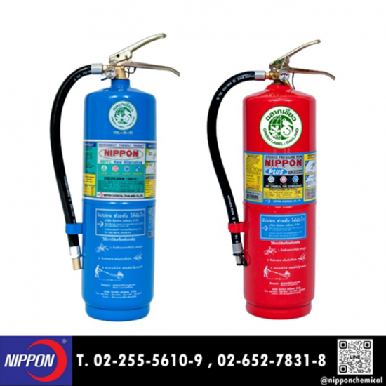เครื่องดับเพลิงชนิดผงเคมีแห้ง (Dry chemical) เครื่องดับเพลิงเคมี A.B.C. ยี่ห้อ "NIPPON" มีประสิทธิภาพสูง ในการดับเพลิง สามารถดับเพลิง Class A B C ไม้, ผ้า, กระดาษ, พลาสติก, ไฟฟ้าช๊อต, น้ำมัน, แก๊ส เก็บไว้ได้นานโดยไม่เสื่อมคุณภาพ ผลิตจากโรงงานที่ได้มาตรฐาน ISO 9001:2008 บริษัทฯได้มาตรฐาน ISO 9001:2015, ISO 14001:2015 เป็นผลิตภัณฑ์ที่ได้มาตรฐาน มอก.332-2537 ในระดับความสามารถการดับเพลิงสูง FIRE RATING ตั้งแต่ 2A-2B ถึง 10 A 60B ได้ตามมาตรฐานกฎกระทรวง และประกาศกรมสวัสดิการและคุ้มครองแรงงาน รับประกันคุณภาพ 5 ปี ขนาดบรรจุ 2 Lbs Fire Rating 2A 2B เหมาะสำหรับใช้ในในรถยนต์ส่วนบุคคล, รถโฟล์คลิฟท์ 5 Lbs Fire Rating 3A 5B เหมาะสำหรับใช้ในรถโดยสาร, ที่พักอาศัย  10 Lbs Fire Rating 6A 30B เหมาะสำหรับ ที่พักอาศัย, อาคารสำนักงาน, ร้านค้า, โรงงานอุตสาหกรรม 15, 20 lbs Fire Rating 10A 40B เหมาะสำหรับ อาคารสำนักงาน, โรงแรม, โรงงานอุตสาหกรรม, ห้างสรรพสินค้า       บริษัท นิปปอน เคมิคอล จำกัด    0-2652-7831-8, 0-2255-5610-9   @nipponchemical